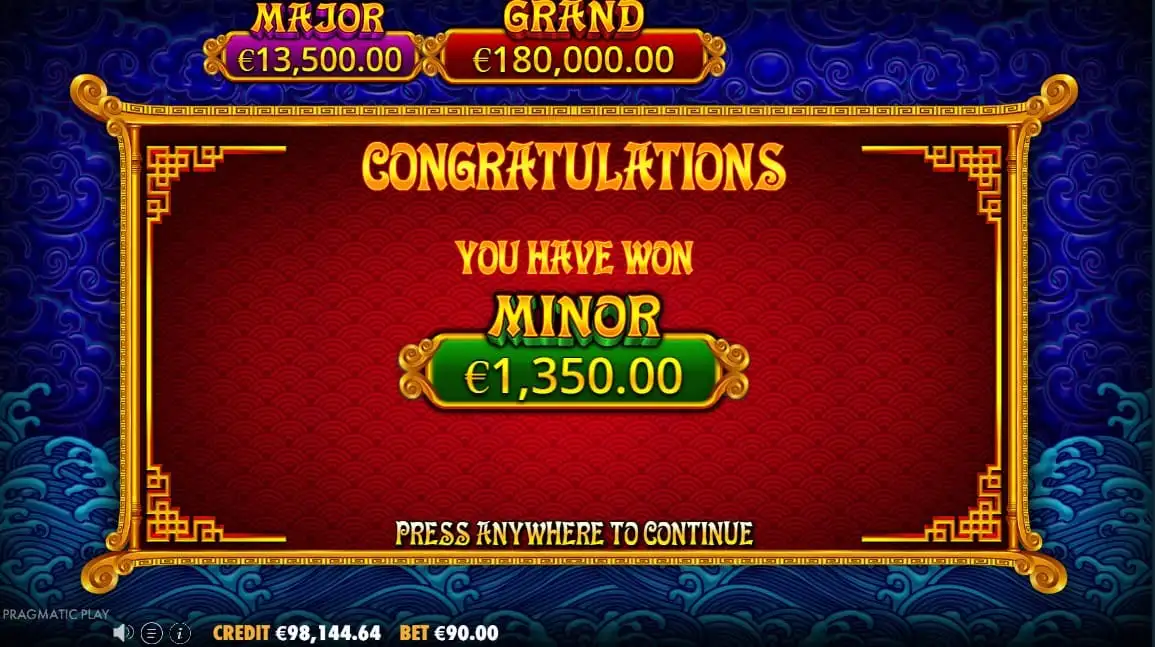 5 Lions Gold destaca por sus tres botes fijos: Minor, Major y Grand. Estos botes pueden activarse aleatoriamente durante cualquier tirada, lo que añade expectación constante.