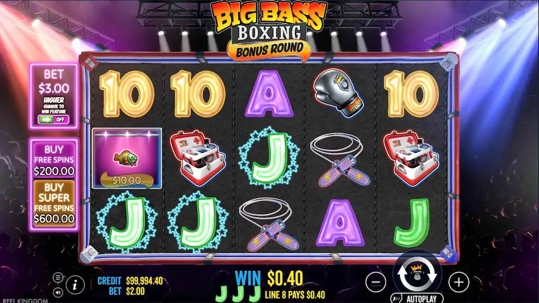 La historia es ligera pero atractiva. El personaje del pescador, una cara familiar de la serie Big Bass, se pone los guantes de boxeo y se enfrenta a los retadores en las rondas de bonificación. Cada giro es como otro asalto en la pelea: las pequeñas victorias te mantienen en pie, mientras que los grandes golpes en los giros gratis parecen golpes de KO.