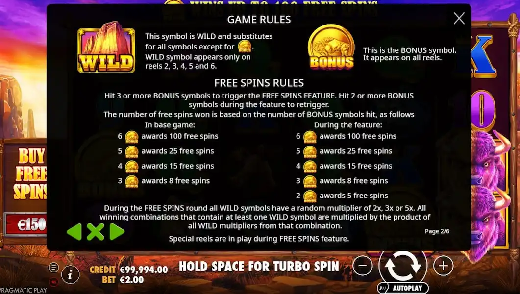 Cuando nuestro equipo comenzó a probar Buffalo King, inmediatamente vimos la magnitud de la ambición de Pragmatic Play. La tragaperras no se limita a tomar prestado el paisaje americano salvaje, sino que crea una vista panorámica llena de cielos resplandecientes, acantilados y la imponente presencia del propio búfalo.