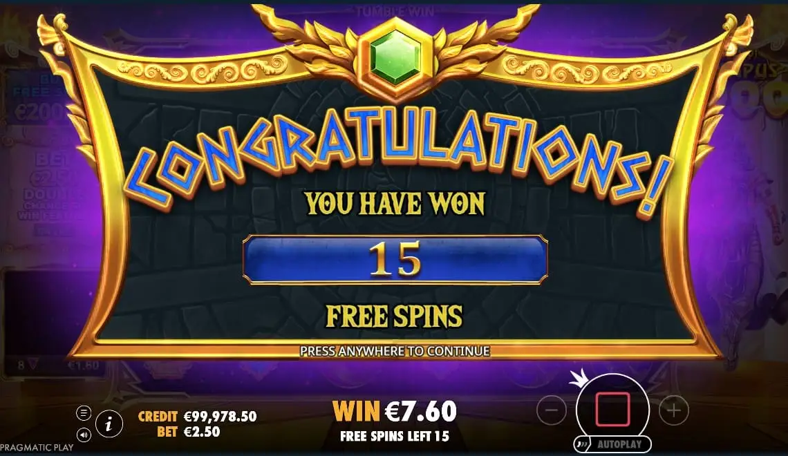 Los resultados más lucrativos se producen cuando las ganancias en cascada se combinan con varios multiplicadores durante la ronda de tiradas gratuitas. Al alcanzar varios multiplicadores de 100x o más en una secuencia, puede hacer que las ganancias lleguen al máximo potencial de la máquina tragaperras que es de 10.000 veces la apuesta.