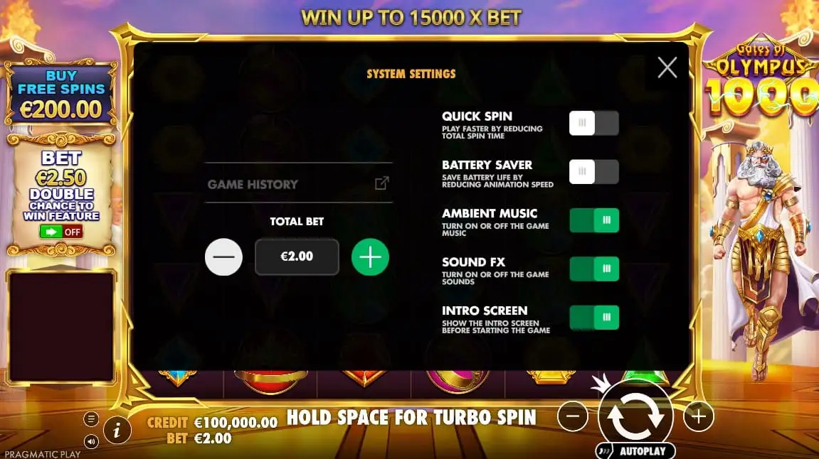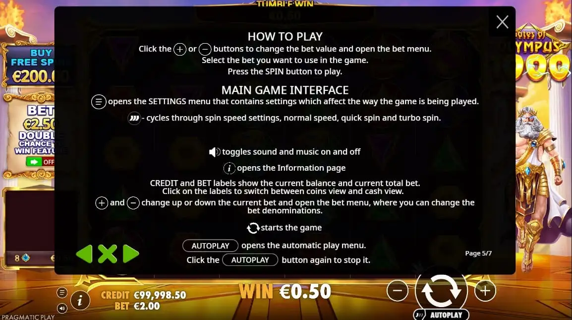 El tema está inspirado en la mitología griega, con el mismísimo Zeus presidiendo los rodillos. Los relámpagos crepitan, las columnas doradas brillan y en cada giro parecen todo tipo de dioses. Los jugadores españoles familiarizados con la mitología apreciarán cómo el diseño se mantiene fiel al tema sin dejar de ser entretenido.