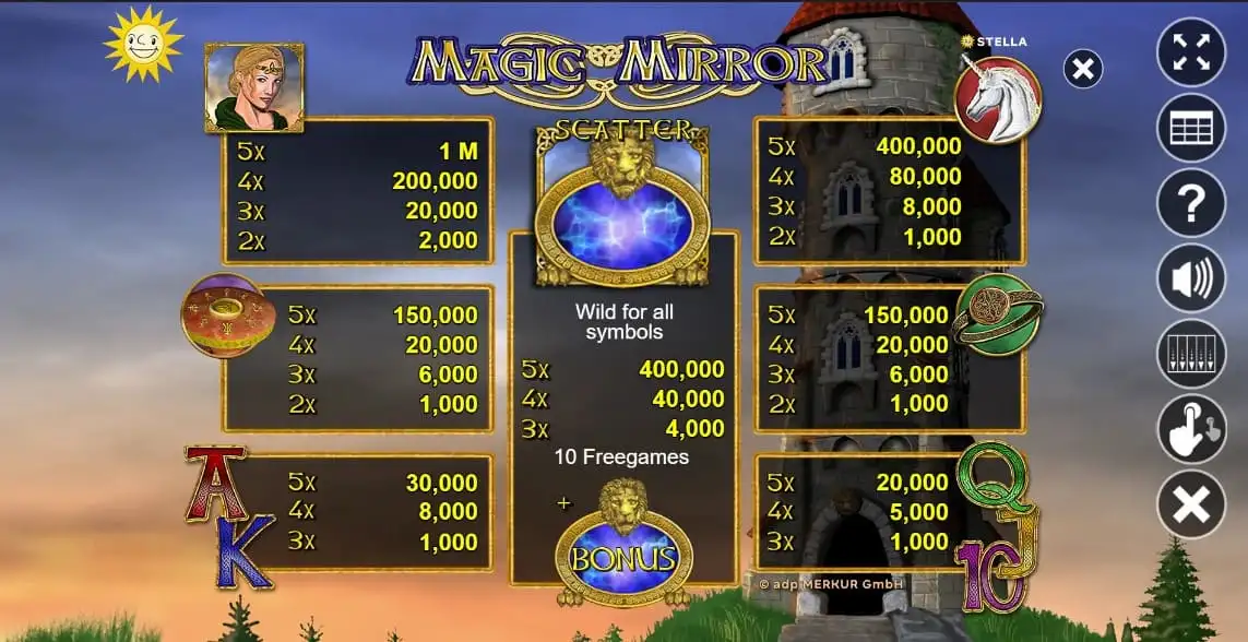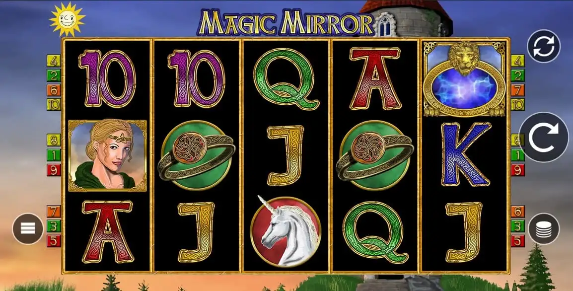 Magic Mirror se basa en diseños fantásticos con magos, espejos encantados y criaturas mágicas. Los rodillos están ambientados en un paisaje místico, diseñado para atraer a los jugadores españoles que disfrutan con la estética de los cuentos de hadas.