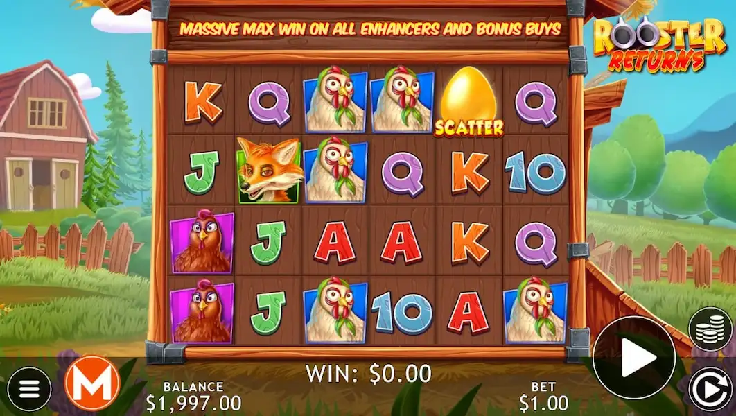 Rooster Returns tiene un perfil de volatilidad medio-alto, lo que significa que los pagos son menos frecuentes pero potencialmente mayores cuando se producen. El RTP (Retorno al jugador) está alrededor del estándar de la industria, asegurando probabilidades justas a largo plazo. Para los jugadores, este equilibrio crea una mezcla de pequeñas ganancias regulares con la oportunidad de obtener mayores recompensas.