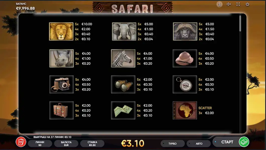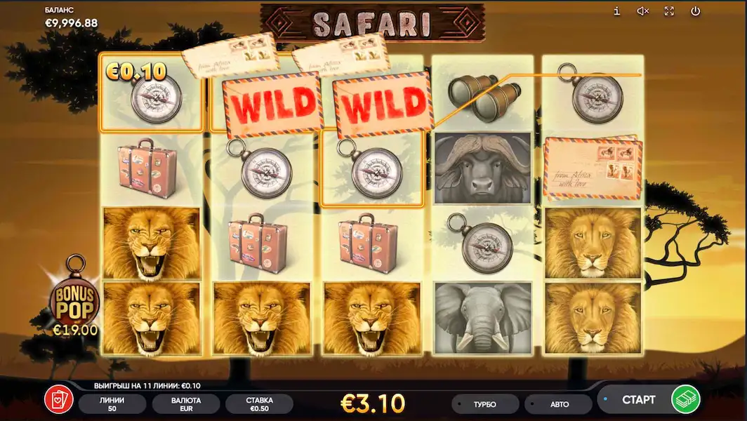 Desde un punto de vista técnico, Safari es un juego sencillo pero entretenido. La tragaperras funciona en una cuadrícula de 5x3 con 10 líneas de pago, ofreciendo claridad tanto para principiantes como para jugadores experimentados. Con un RTP del 96% y una alta volatilidad, atrae a aquellos que disfrutan con las sesiones tensas y la emoción de los grandes premios pero con menos frecuencia.