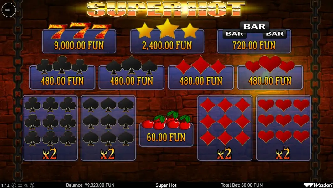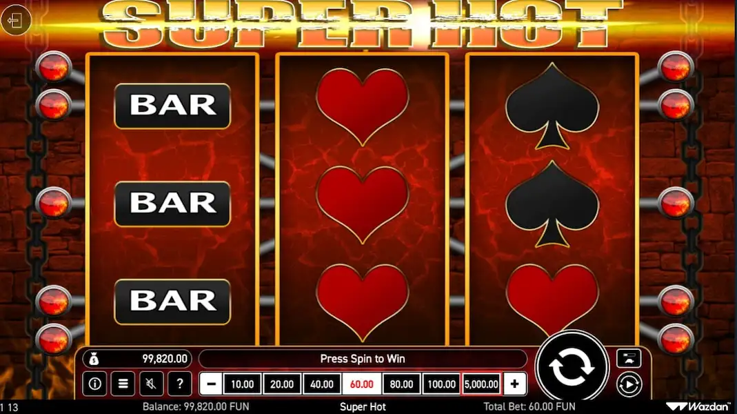Wazdan se aseguró de que Super Hot ofreciera un modo de juego Demo, y recomendamos encarecidamente probarlo antes de apostar dinero real. En nuestras sesiones de prueba, esto nos ayudó a evaluar las oscilaciones de volatilidad y la frecuencia de pago sin riesgo financiero.