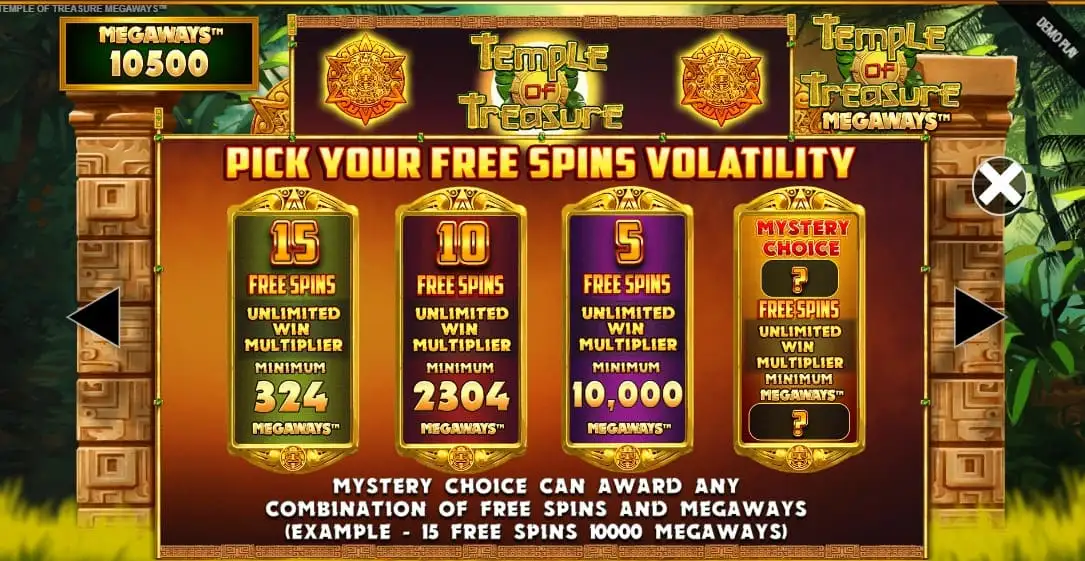 Opciones de tiradas gratuitas en Temple of Treasure Megaways