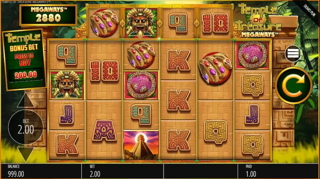 Como parte de la línea Megaways de Blueprint Gaming, la tragaperras Temple of Treasure Megaways destaca por combinar rodillos en cascada con una ronda de bonificación que permite a los jugadores dar forma a la volatilidad por sí mismos. En lugar de forzar un único camino, el juego presenta una variedad de opciones, lo que hace que cada sesión parezca menos guionizada que otros títulos Megaways.