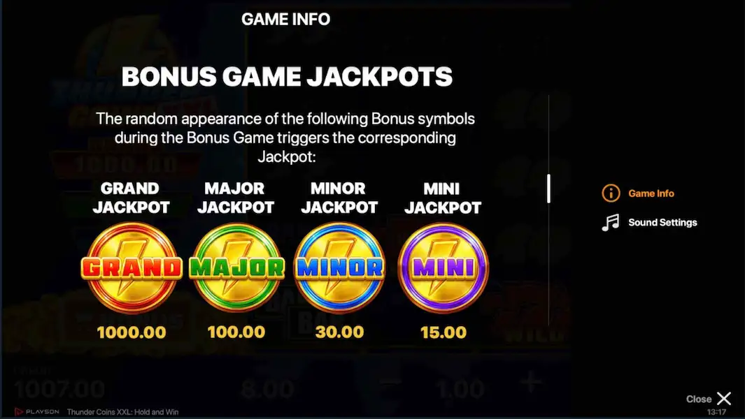 Thunder Coins XXL funciona con un rendimiento teórico del 95,60%, situándose ligeramente por debajo de los estándares del mercado, pero en línea con el catálogo de Playson. La varianza media-alta garantiza intervalos prolongados entre victorias importantes, aunque las recompensas máximas ascienden a 5.405x las apuestas iniciales, un monto impresionante teniendo en cuenta la temática clásica de la tragaperras.